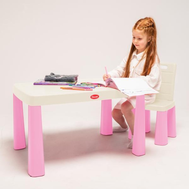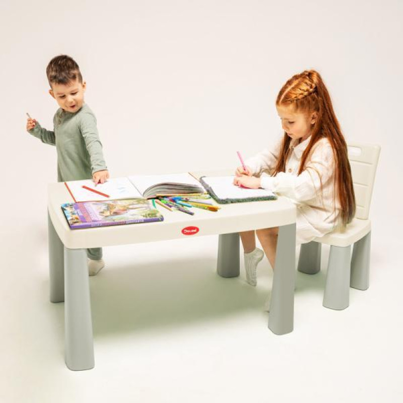 Практичний комплект від Doloni складається з дитячого столу та двох стільців із пластику. Особливість цих стільців у тому, що їх можна легко перетворити на табурети: спинка знімається повністю, а замість неї встановлюється заглушка, яка входить у набір. Така універсальність дозволяє використовувати ..