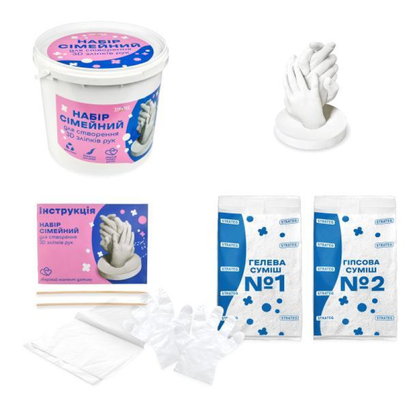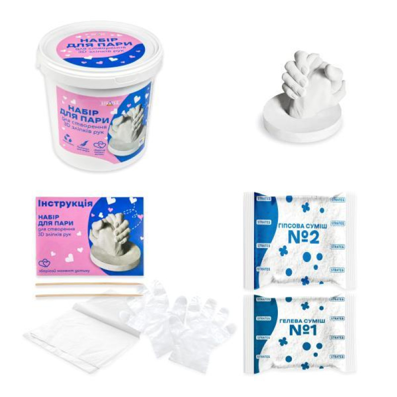 Набір для творчості «3D зліпки рук для пари» – це оригінальний спосіб зберегти почуття у вигляді символічного об’ємного відбитка.Він призначений для того, щоб створити парний зліпок рук як знак довіри, тепла та близькості. Такий набір стане чудовим подарунком на річницю, заручини чи просто як зворуш..