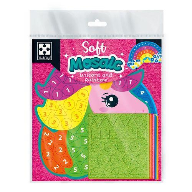 Набір для творчості Vladi Toys із плюшевою мозаїкою «Єдиноріг та Веселка» перенесе дитину у світ казки та магії. Єдиноріг прямує по барвистій веселці до свого друга, несучи смачні гостинці. Малюк може допомогти йому стати ще красивішим, прикрасивши героя м’якими кольоровими елементами.Створюючи карт..