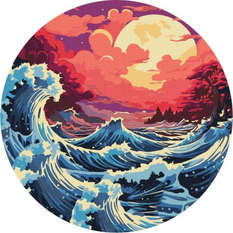 Картина за номерами Морська. Морський захід сонця, Круглий підрамник, d26см, термопакет, Идейка (KHO-R1061)