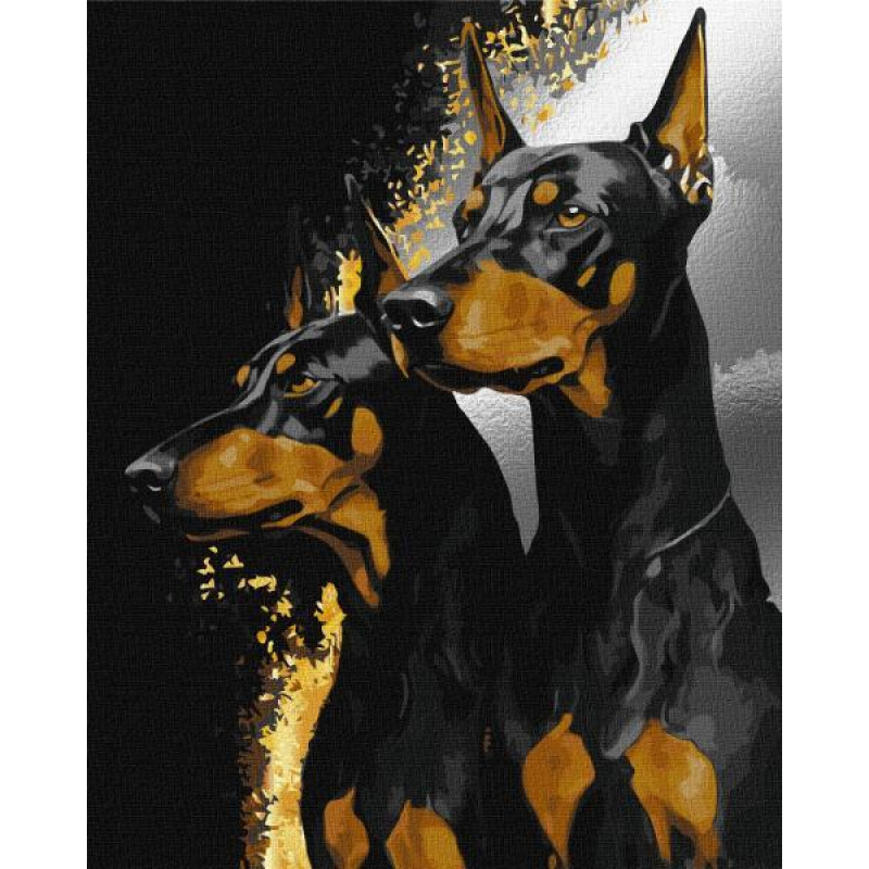 Картина за номерами Тварини. Вірні добермани, з фарбами металiк extra, 40х50см, в термопакеті, Идейка (KHO6524)