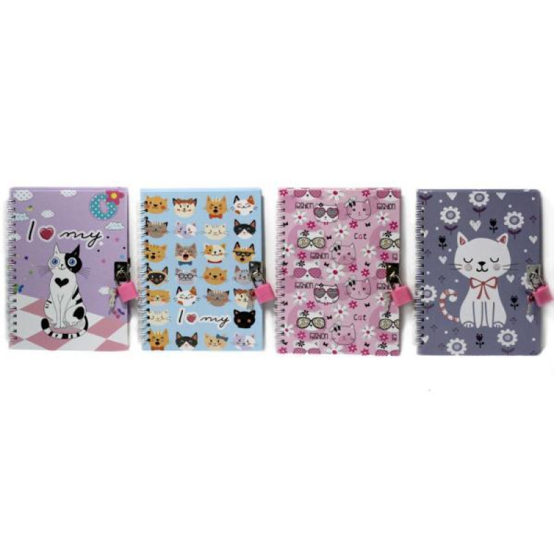 Блокнот на замку 13*18см із гліттером, спіраль, 45л., 80гр. Котики, арт: S32K-014..