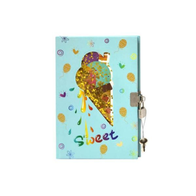 Блокнот на замку А5 80листів., 75гр. тверда обкладинка з розсипними паєтками, Морозиво, арт: 5183..