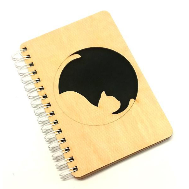 Блокнот дерев. обкладинкою А5 "Кошеня-2", 100 аркушів, бок. упр., 20*15*2см , ТМ Колорит, Україна