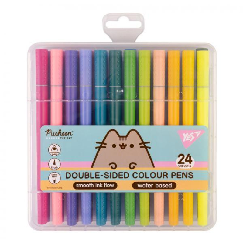 Фломастери двосторонні 24 кольори "Pusheen". 17*17*3см, ТМ Yes, Україна, арт: 650562..