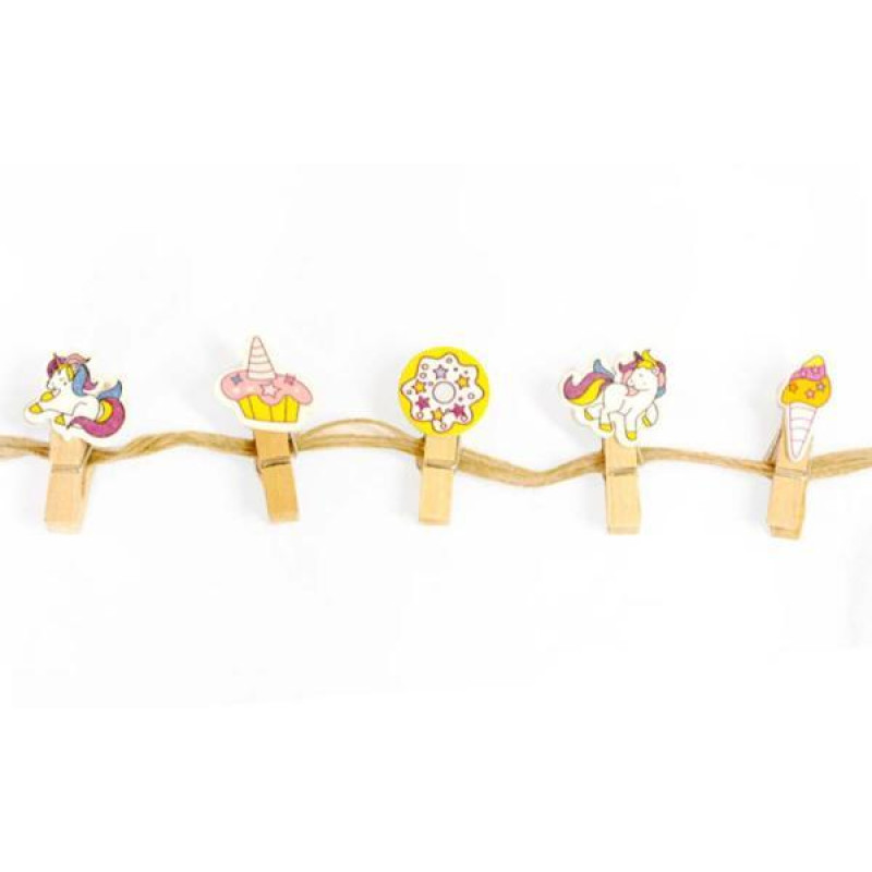 Прищіпки 10 штук для фото з мотузкою 3,5 см, десерти та єдинороги...