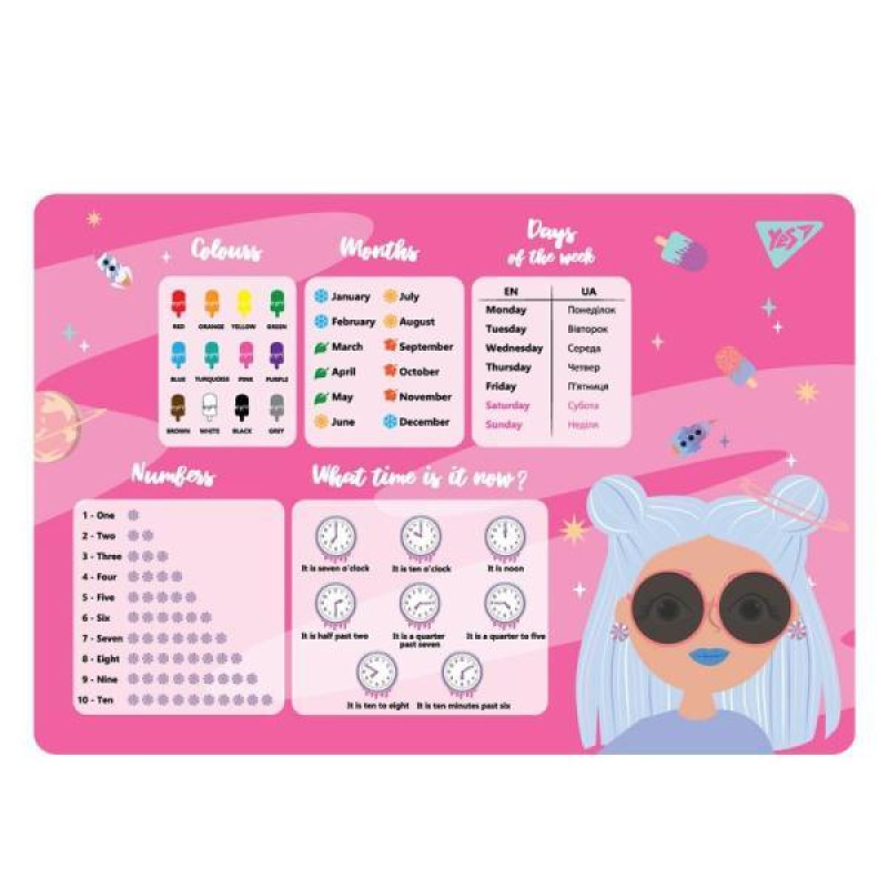 Підкладка для столу Yes Pusheen Popcorn з підказками англ А3 – це яскравий та функціональний аксесуар для письмового столу школяра, який підвищує комфорт та сприяє ефективному навчанню.Виготовлена з якісного первинного пластику, підкладка ТМ Yes серії Pusheen прикрасить робочий простір улюбленими ко..