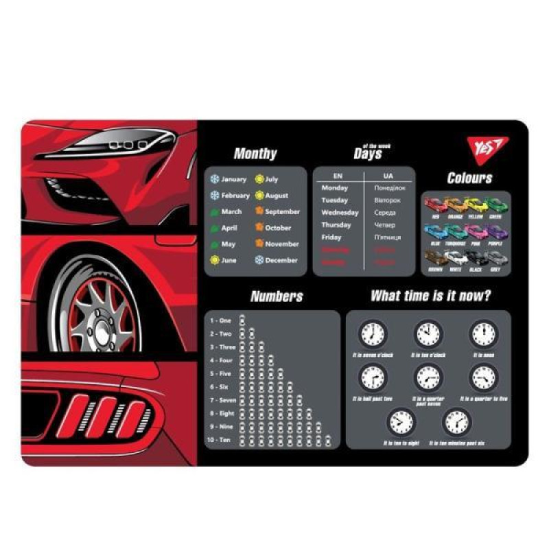Підкладка для столу Yes Ninja з підказками таблиця множення А3 – це яскравий та практичний аксесуар для письмового столу школяра, який підвищує комфорт та сприяє ефективному навчанню.Виготовлена з якісного первинного пластику, підкладка ТМ Yes серії Ninja прикрасить робочий простір улюбленими кольор..