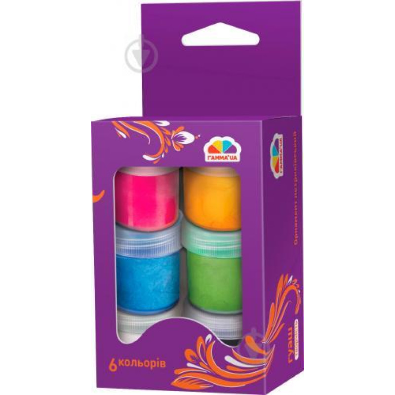 Фарби гуаш, 6 кольорів, перламутрові, 10мл, Творчість, в кор. 10*6*3см, Україна, ТМ Гамма..