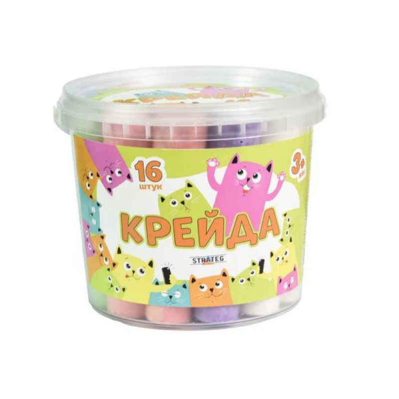 Крейда Велика кругла 16 штук різнокольорова, ТМ Стратег, Україна, арт: 50138S..