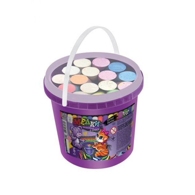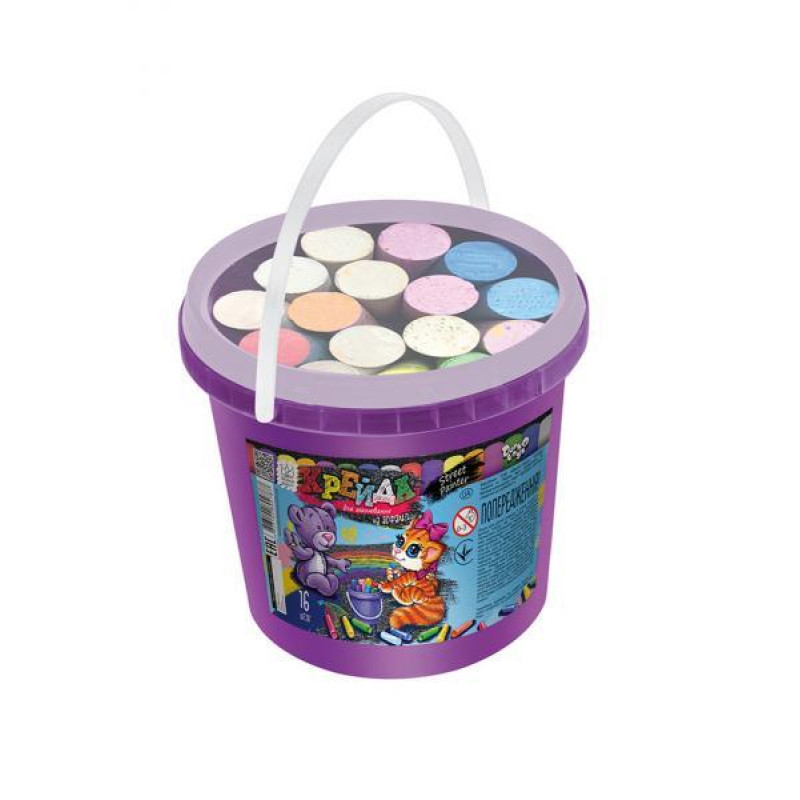 Крейда 16шт різнокольорова, велика кругла, відро 13*10*10см, ТМ Стратег, Україна...