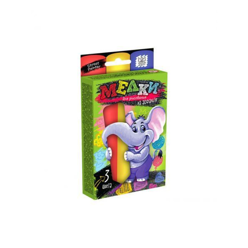 Крейда для малювання на асфальті, велика, 3шт, укр., в кор. 8*13*2,5см..