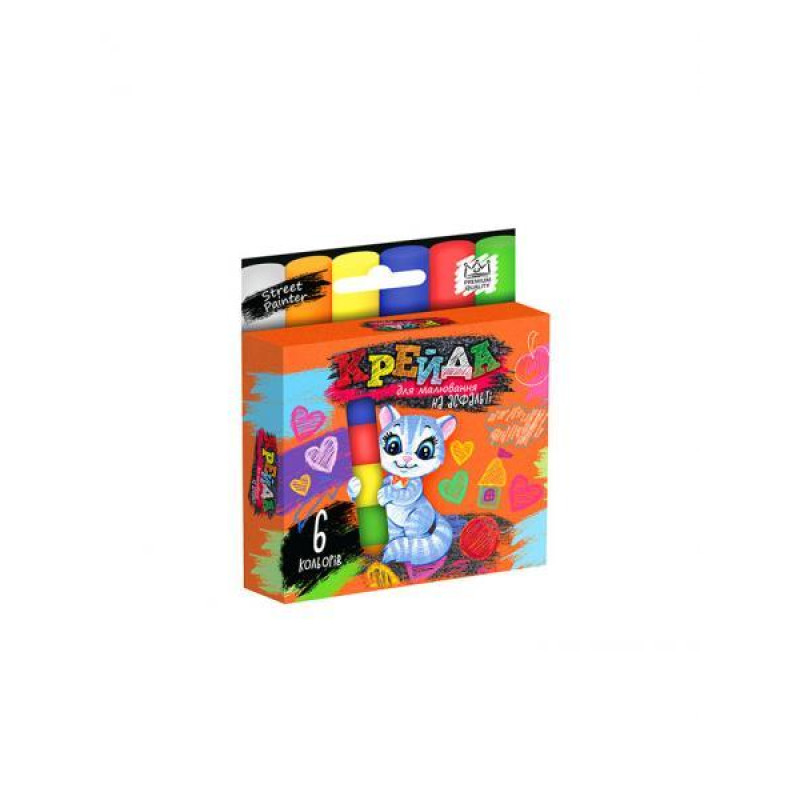 Крейда для малювання на асфальті, тонка, 6шт, укр.в кор. 8*9*2см..