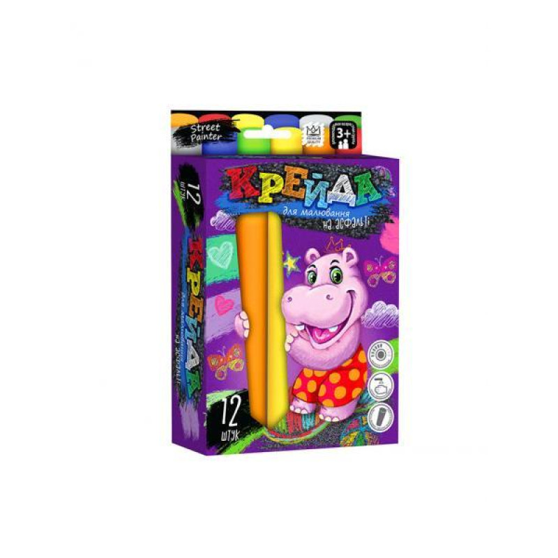Крейда для малювання на асфальті, велика, 12шт, українська, в кор. 10*3*10см..