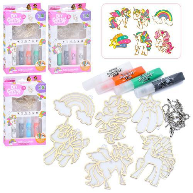 Набір для творчості підвіска-розмальовка 6 шт, ланцюжок, фарби (4 кольори), в кор. 21,5*13*5см арт: YM999-9..