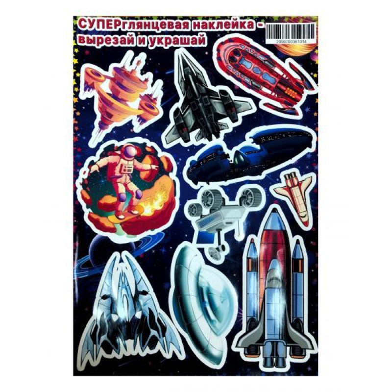 Наклейка А4 Вирізай та прикрашай "Космос", 21*30см..