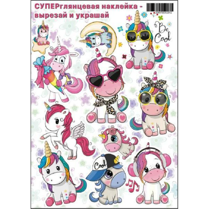 Наклейка А4 Вирізай та прикрашай Чудові одноріжки Білий фон, 21*30см..