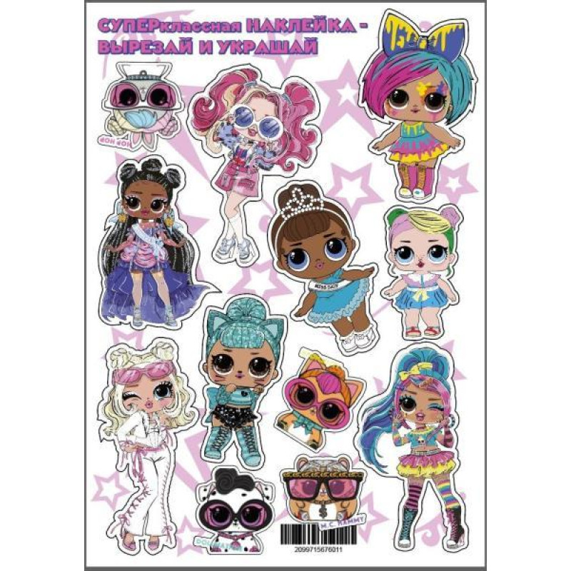 Наклейка А4 Вирізай та прикрашай "Лялечки на білому тлі" 30*20см, ТМ Oksamut.art, Україна, арт: 676011..