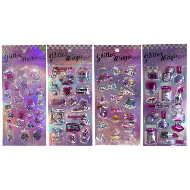 Наклейка лазерна з розсипними блискітками 9*18см, Мікс дизайнів..