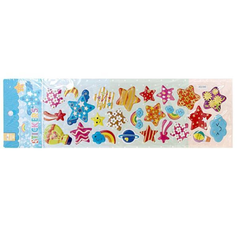 Наклейка рельєфна, опукла з фольгою 10,5*35см Зірочки, хмари 12шт/уп, арт: XQ-040..