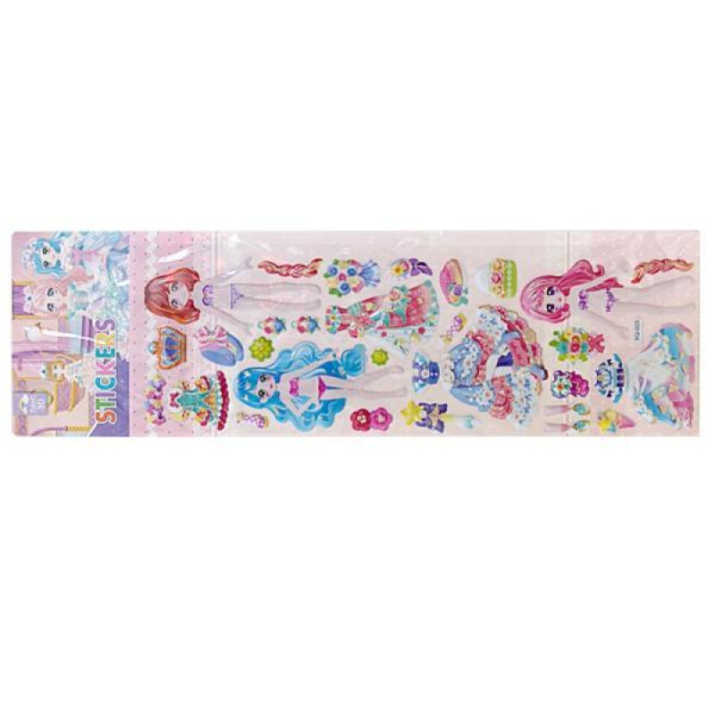 Наклейка рельєфна, опукла з фольгою 10,5*35см Одягни ляльки 12шт/уп, арт: XQ-003..