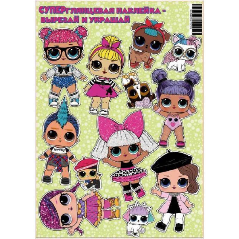 Наклейка А4 Вирізай та прикрашай "Модні ляльки" ФОН КОЛЬОРУ ЛАЙМ, 21*30см..