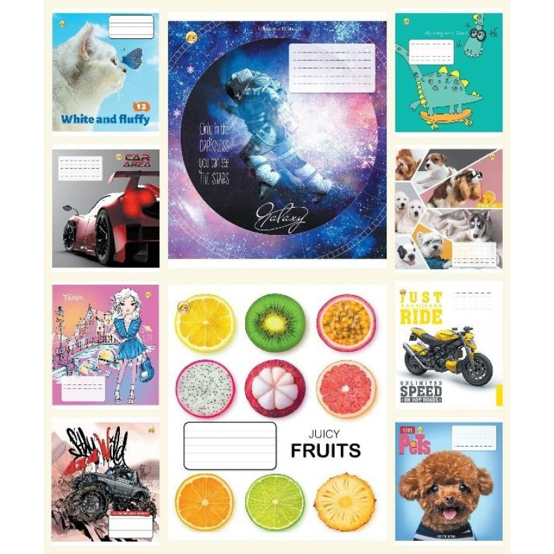 Зошит 12 л. = ЦІНА УП. 25шт кольорова обкладинка, ТМ Тетрада, Україна