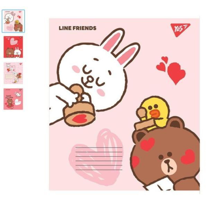 Зошит 12лист, коса лін. "Line friends", ЦІНА ЗА УП. 25ШТ, ТМ YES, Україна