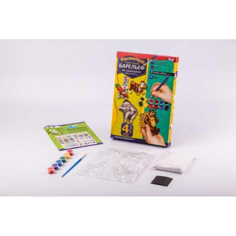 Форма для 4-х фігур, гіпс, фарби 6 кольорів, пензлик, магнітна стрічка, інструкція |