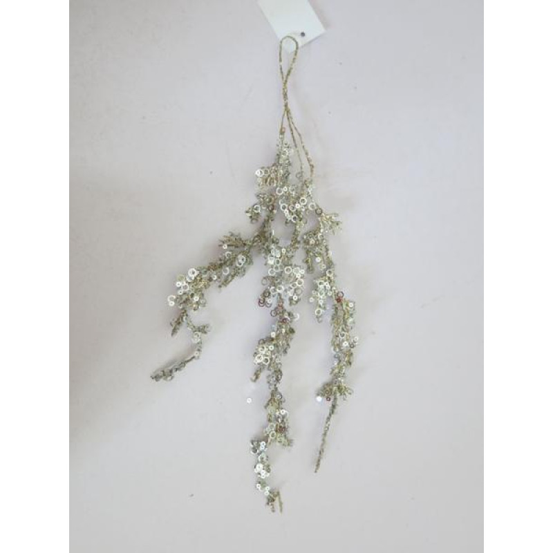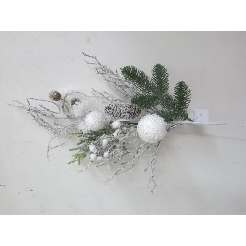 Неймовірно витончена гілка, злегка присипана штучним снігом, призначена для створення святкових новорічних композицій, використовується як прикраса для декорування ялинки, а також є чудовим окремим елементом декору інтер'єру, якщо розмістити її, наприклад, над дверима у вітальні або на підвіконні. Р..