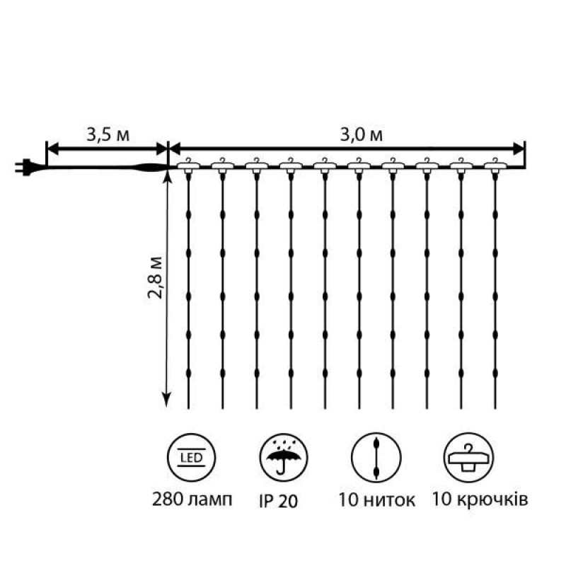 Електрогір. штора Novogod‘ko на мідн.дроті, 280 LED, багатокол., 3*2,8 м, стат.св. (974224) арт: 974224-tp
