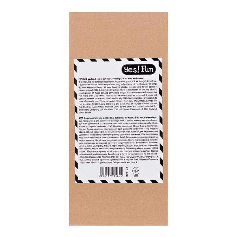 Електрогірлянда-ретро LED вулична Yes! Fun, 10 ламп, d-60 мм, багатобарвна, 8 м (801173) арт: 801173-tp
