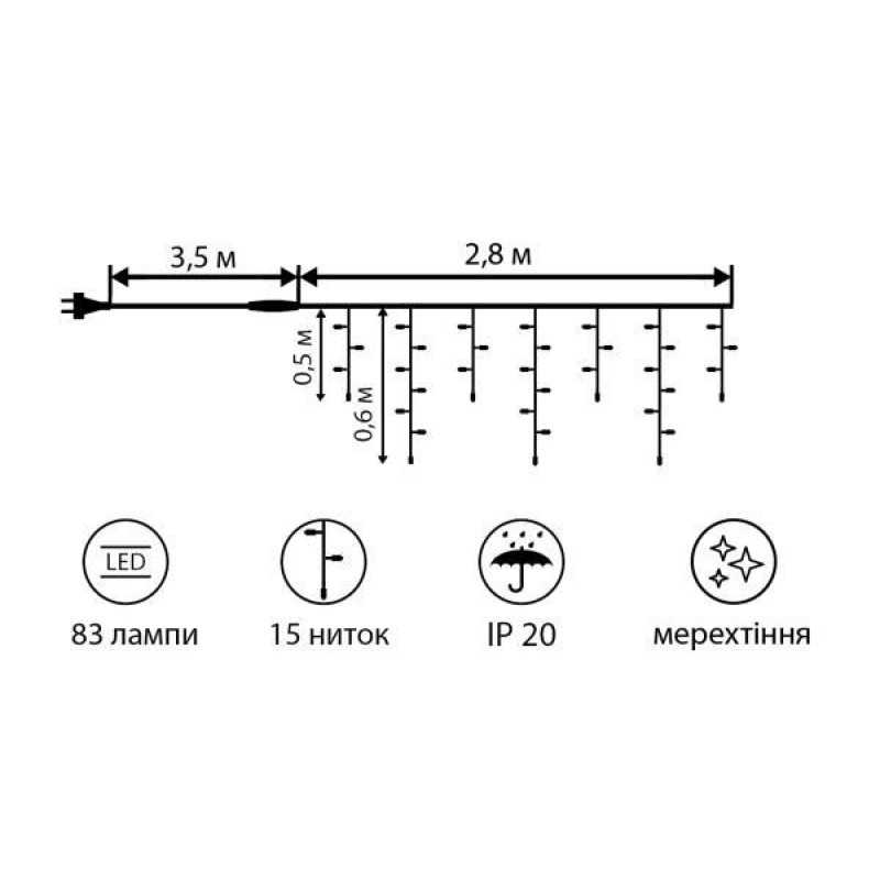 Гірлянда світлодіодна бахрома Novogod‘ko, 83 LED, синій, 3*0,6 м, мерехтіння (973777) арт: 973777-tp