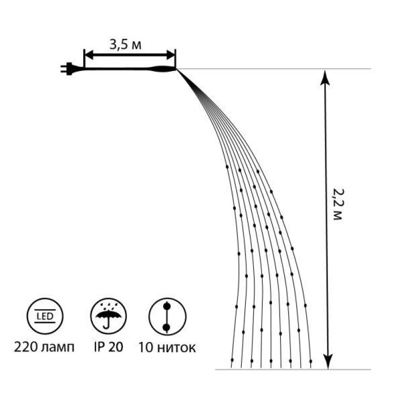 Електрична гірлянда Novogod‘ko на мідному дроті "Кінський хвіст" - продумане рішення для швидкого прикрашання ялинки. Нитки з лампочками зібрані в пучок, який вгорі вінчає тримач з кільцем. Щоб прикрасити ялинку, потрібно надіти кільце на верхівку, а нитки рівномірно розподілити по гілках (можна укласти їх вертикально від верхівки до нижніх гілок або вплести в хвою).