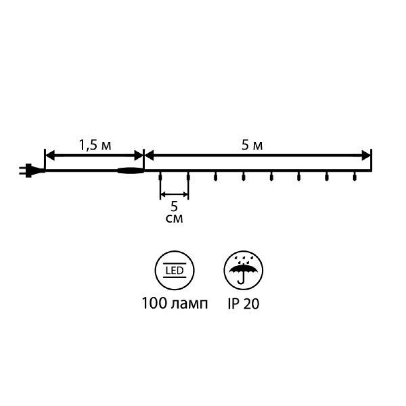 Електрогірлянду використовують для прикрашання новорічних ялинок та різдвяних композицій, створюючи затишну атмосферу і святковий настрій. Колір лампочок, що світяться: блакитний. Кількість лампочок: 100 шт.. Електрогірлянда має 8 режимів мигання, які регулюються контролером. Довжина проводу: 5 м. Джерело живлення: від мережі (230 В, 50 Гц, 3,6 Вт). Прикрашайте свій будинок зі смаком та насолоджуйтеся різдвяними свята з близькими Вам людьми!