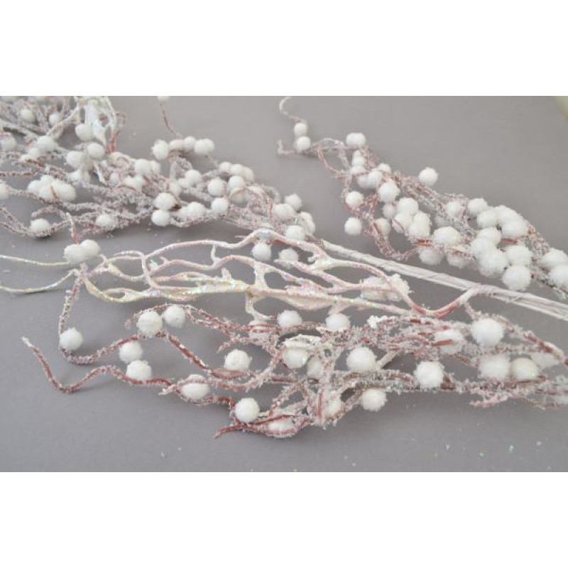 Неймовірно витончена гілка, злегка присипана штучним снігом, призначена для створення святкових новорічних композицій, використовується як прикраса для декорування ялинки, а також є чудовим окремим елементом декору інтер'єру, якщо розмістити її, наприклад, над дверима у вітальні або на підвіконні. Розмір гілки: 120 см. Склад: пінопласт, пластик, дріт. Упаковка: полібег.