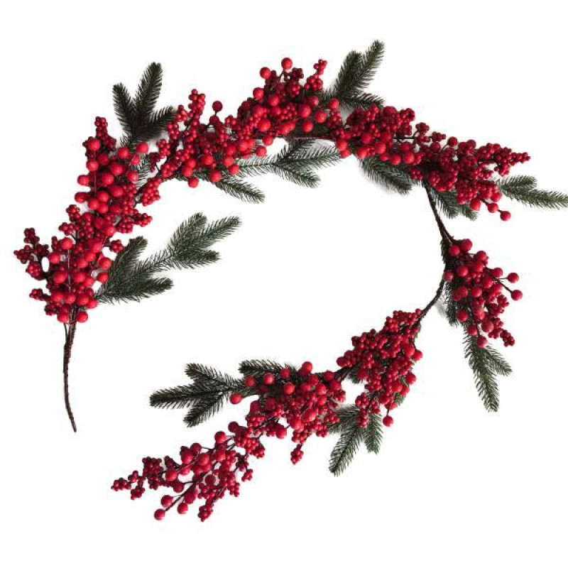 Гілка декоративна Yes! Fun Червоні ягоди та хвоя, 130 см (975008) арт: 975008-tp