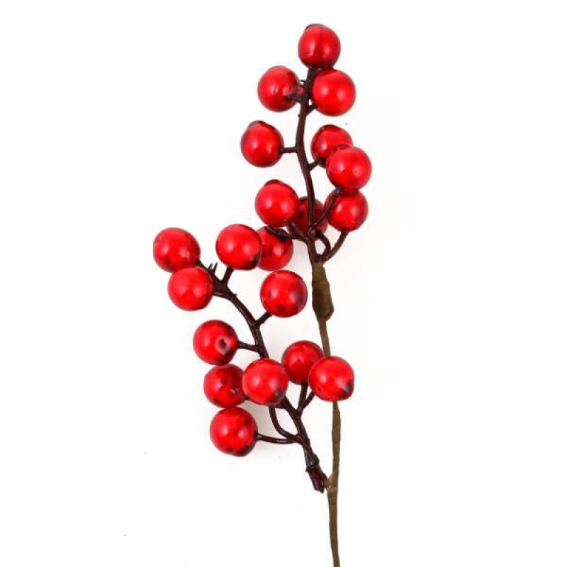 Декоративна гілочка з червоними ягодами стане чудовим доповненням до великої різноманітності святкових композицій. Гармонійно виглядає у поєднанні з виробами з дерева, ротанга, джуту, бавовни. Такими гілочками можна прикрасити ялинку або різдвяні вінки, які зазвичай займають своє місце на вхідних дверях кожного будинку в зимовий період. Розмір: 24 см. Склад: пінопласт, пластик. Упаковка: полібег.
