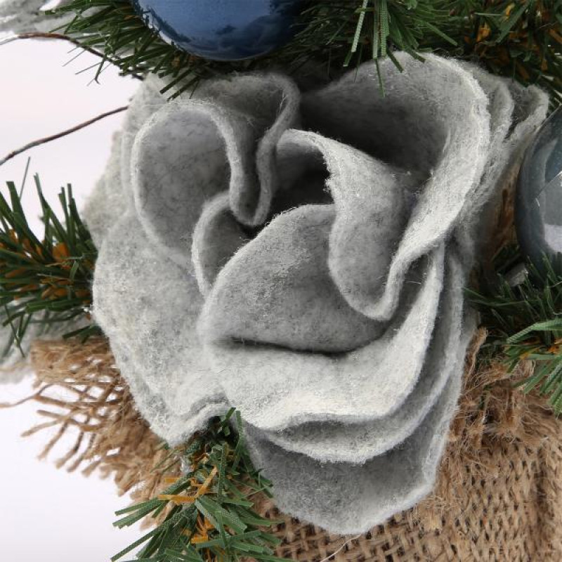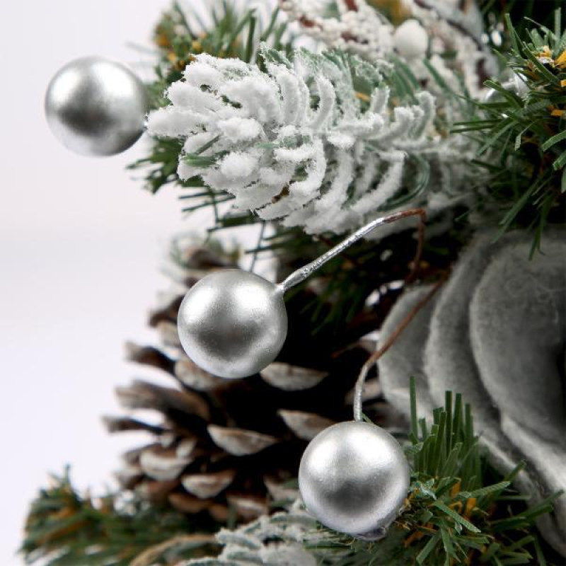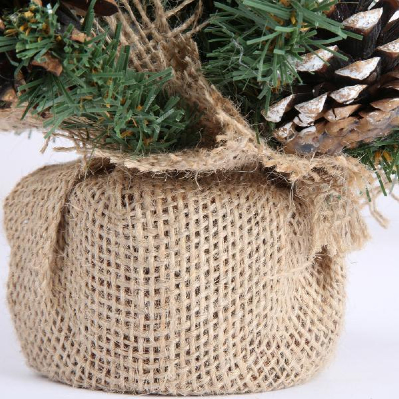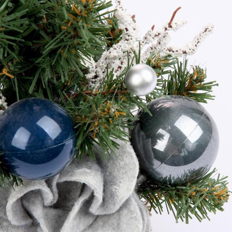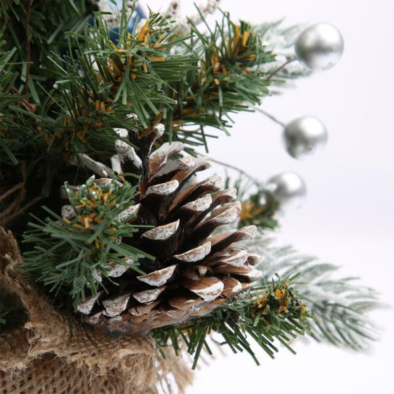 Штучна маленька ялина з ніжними аксесуарами — відмінний декор для приміщення у період новорічних свят, який можна використовувати, прикрашаючи безліч поверхонь у будинку, офісі, в торгових центрах. Поставте таку ялину на столі, полиці, тумбочці, на прилавку магазина, в прикасовій зоні – і святковий настрій оточуючим буде гарантовано. Компактність і якісне виконання даної прикраси — це і є її головні переваги. Матеріал: ПВХ плівка шириною 6 см; дріт; дерев‘яний пеньок, обтягнутий мішковиною. Висота: 25 см. Діаметр нижнього ряду: 25 см. Габарити: 0,25 м.