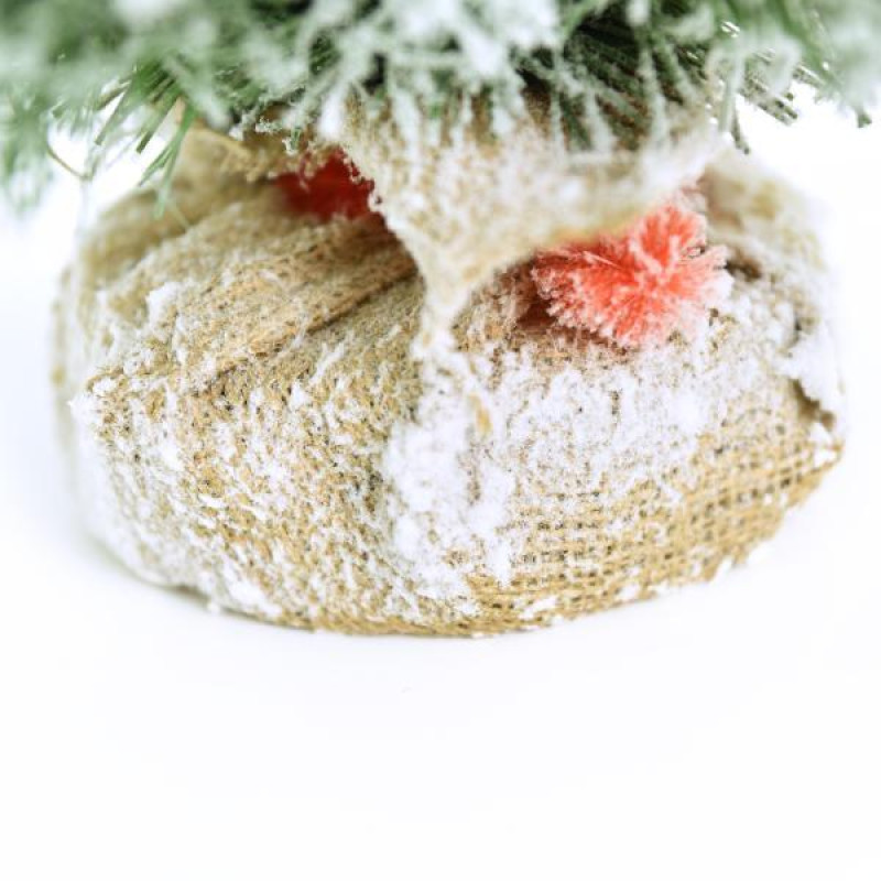 Штучна маленька засніжена ялинка — відмінний декор для приміщення у період новорічних свят, який можна використовувати, прикрашаючи безліч поверхонь у будинку, офісі, в торгових центрах. Поставте таку ялину на столі, полиці, тумбочці, на прилавку магазина, в прикасовій зоні – і святковий настрій оточуючим буде гарантовано. Компактність і якісне виконання даної прикраси — це і є її головні переваги. Матеріал: ПВХ плівка шириною 8,5 см; дріт; дерев‘яний пеньок, обтягнутий мішковиною. Висота: 60 ??см. Діаметр нижнього ряду: 43 см. Габарити: 0,60 м.