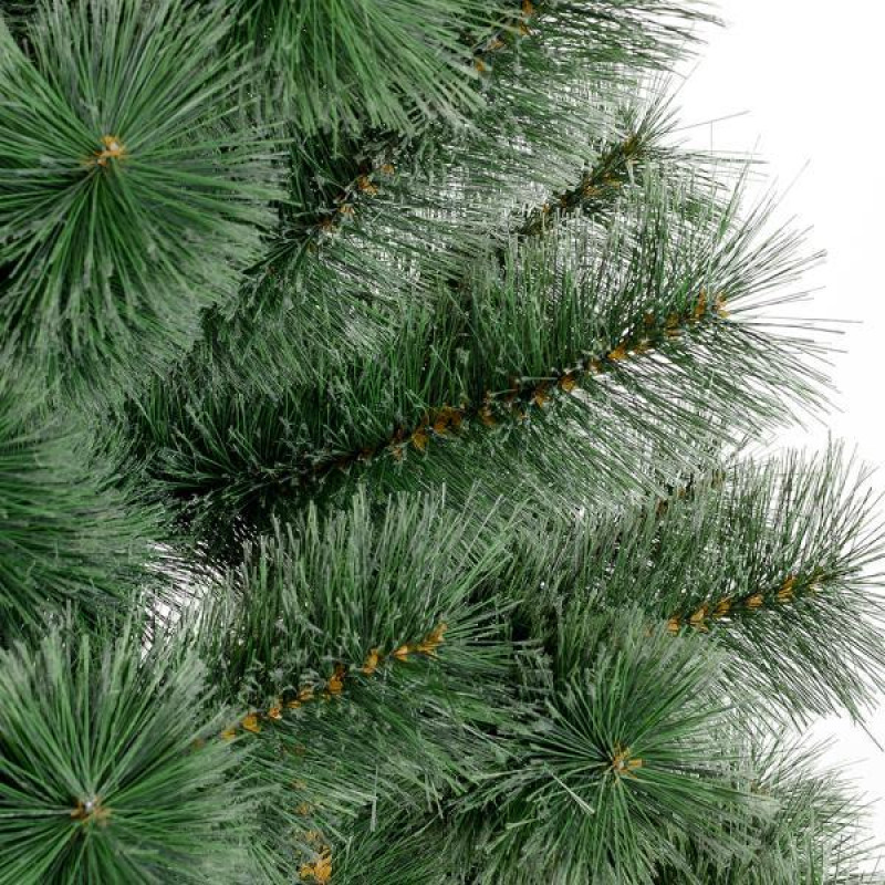 Штучна сосна подібна натуральному дереву, що росте в живій природі. Всі матеріали, екологічно чисті, мають протипожежні властивості. Великим плюсом штучної сосни є її довговічність, а складання конструкції не забере багато часу. Красиве і пишне новорічне дерево буде щорічно наповнювати будинок радістю і благополуччям в різдвяний період. Матеріал: ПВХ плівка шириною 12 см; метал; дріт. Висота: 180 см. Діаметр нижнього ряду: 126 см. Система складається з двох частин. Підставка сосни - це металева хрестовина з болтами, що закріплюють стовбур. Габарити: 1,80 м.