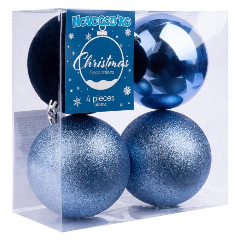 Набір новорічних куль Novogod‘ko, пластик, 10см, 4 шт/уп, блакитний (974423)