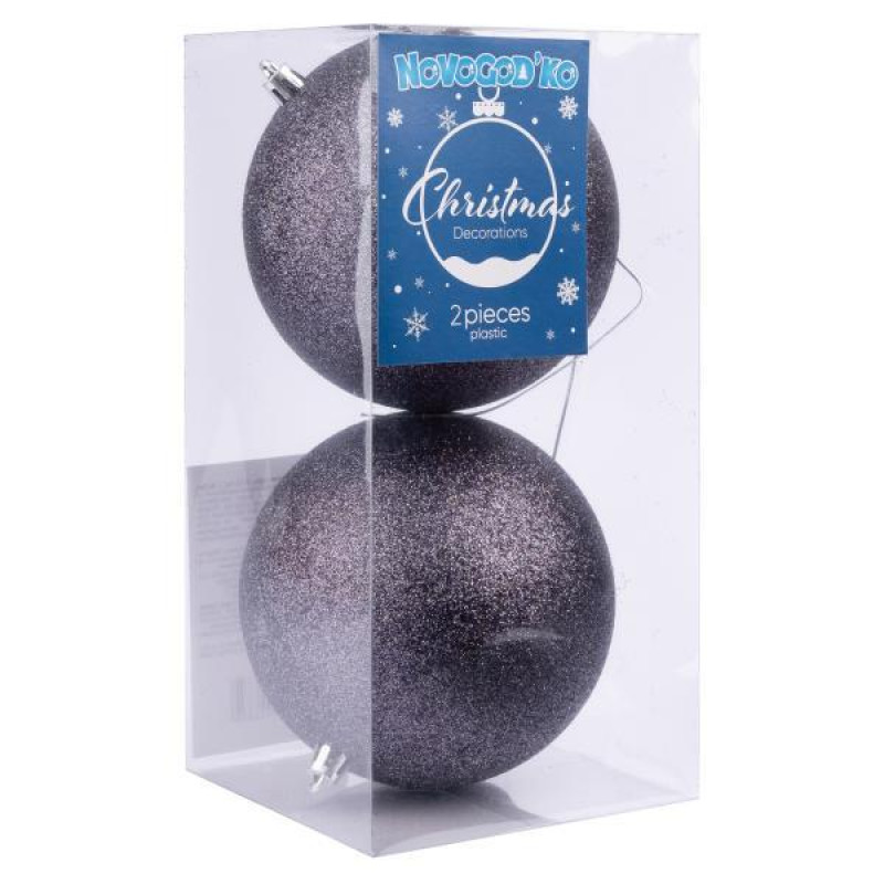 Набір новорічних куль Novogod‘ko 12см, 2 шт/уп, графіт, гліттер (974429)