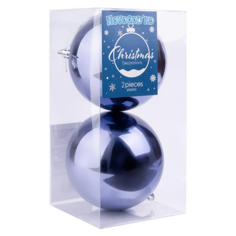 Набір ялинкових кульок використовується для прикраси новорічної ялинки, хвойних гілок і декоративних композицій. Матеріал: пластик. Кількість в упаковці: 2 шт. Діаметр: 12 см...