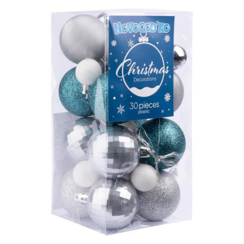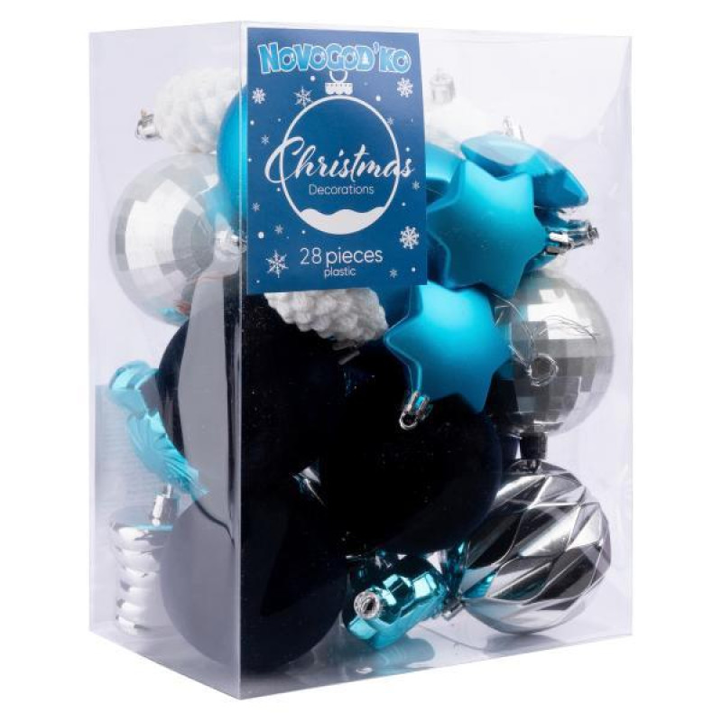Набір новорічних куль Novogod‘ko №1, 28 шт/наб, синій/срібло (974437)