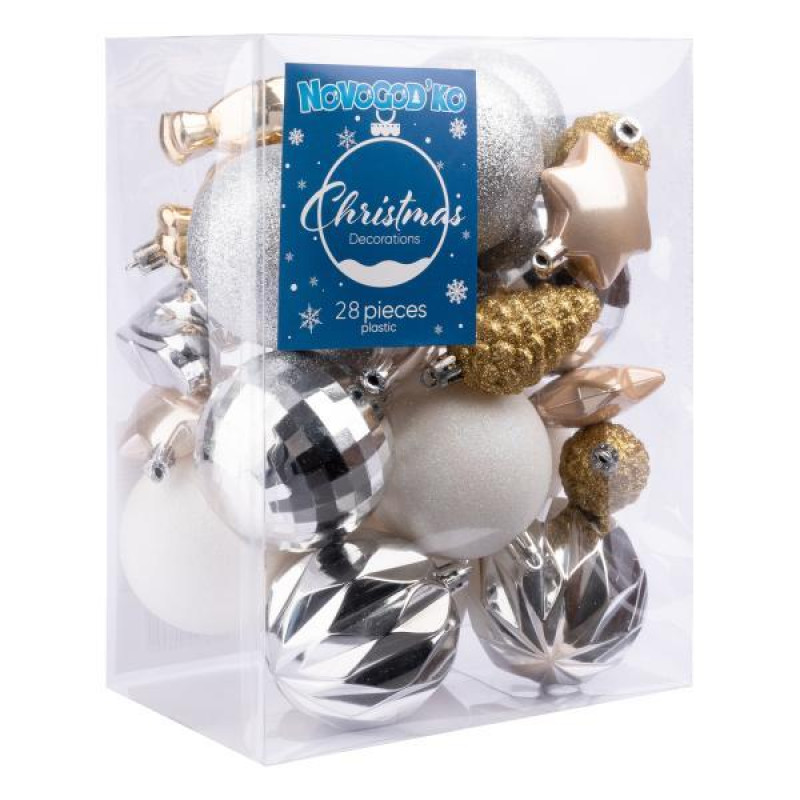 Набір новорічних куль Novogod‘ko №1, 28 шт/наб, срібло/золото (974438)