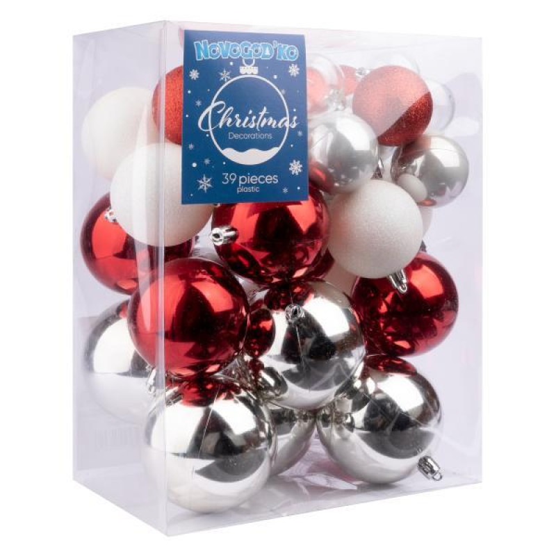 Набір новорічних куль Novogod‘ko №2, 39 шт/наб, червоно/білий (974439)