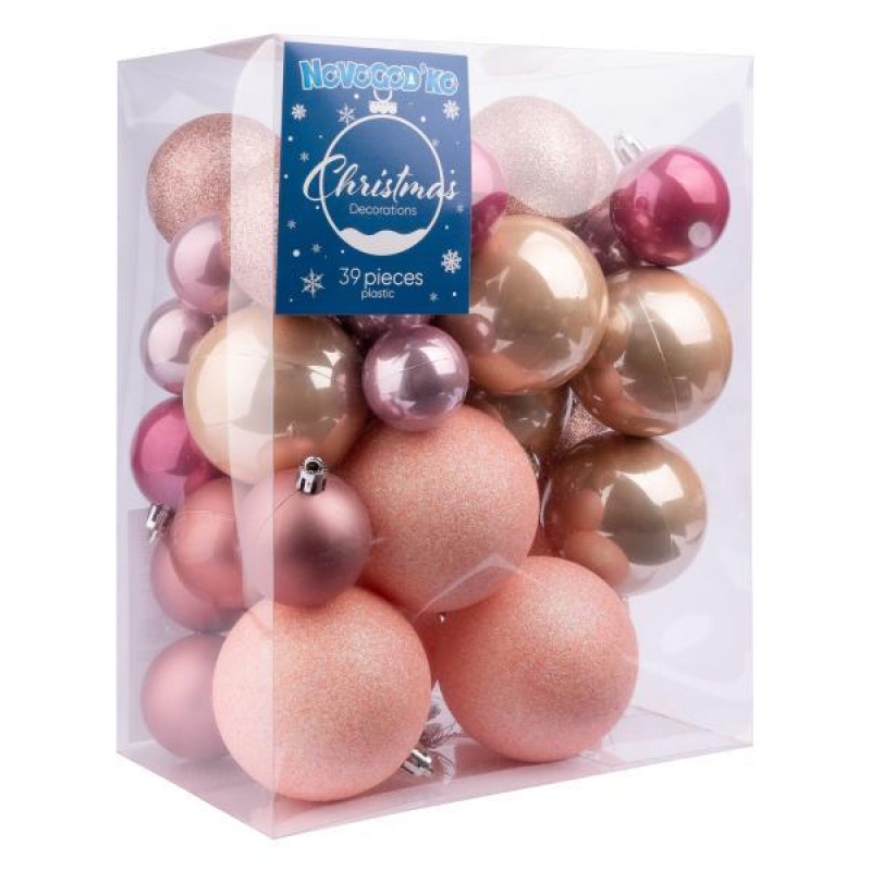 Набір новорічних куль Novogod‘ko №2, 39 шт/наб, рожевий (974440)
