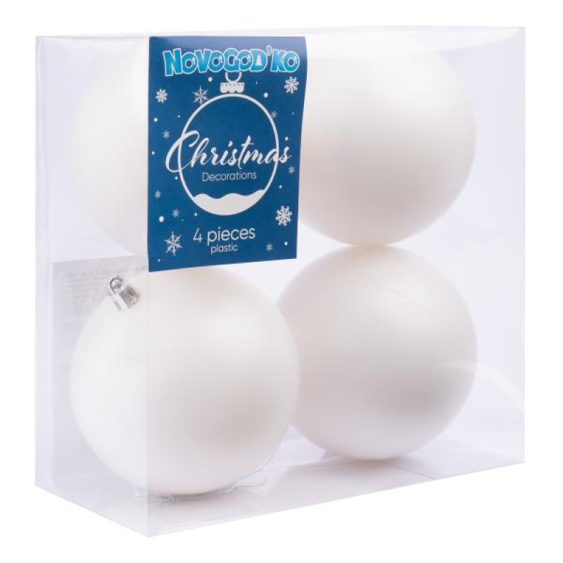 Набір новорічних куль Novogod‘ko, пластик, 10см, 4 шт/уп, білий матовий (974534)