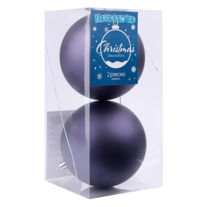 Набір ялинкових кульок використовується для прикраси новорічної ялинки, хвойних гілок і декоративних композицій. Матеріал: пластик. Кількість в упаковці: 2 шт. Діаметр: 10 см...